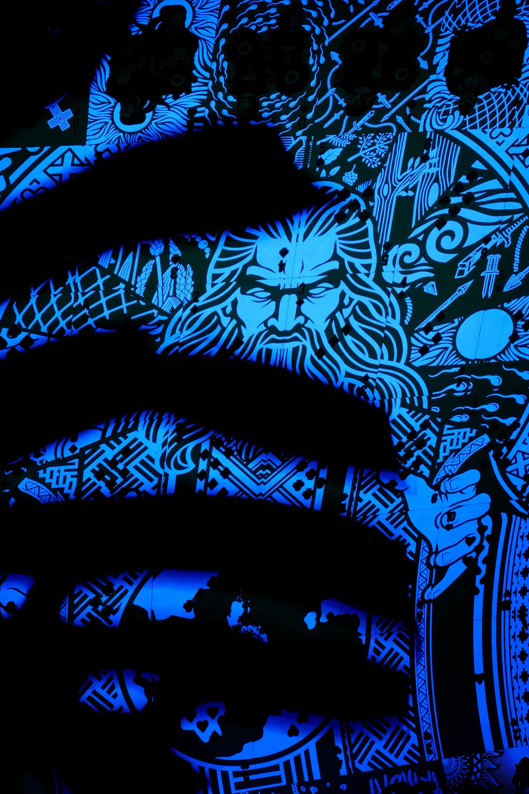 Quando iluminados com luz UV, a verdadeira essência ou aura de cada divindade se revela, enriquecendo a experiência visual e convidando à exploração das histórias encantadoras que moldam o cenário cultural.